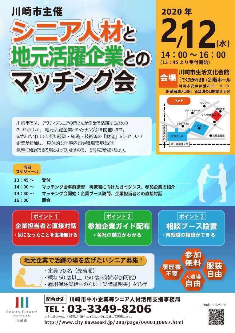 2月12日に川崎市生活文化会館にて川崎市主催のシニア人材と地元活躍企業とのマッチング会に参加してきました。